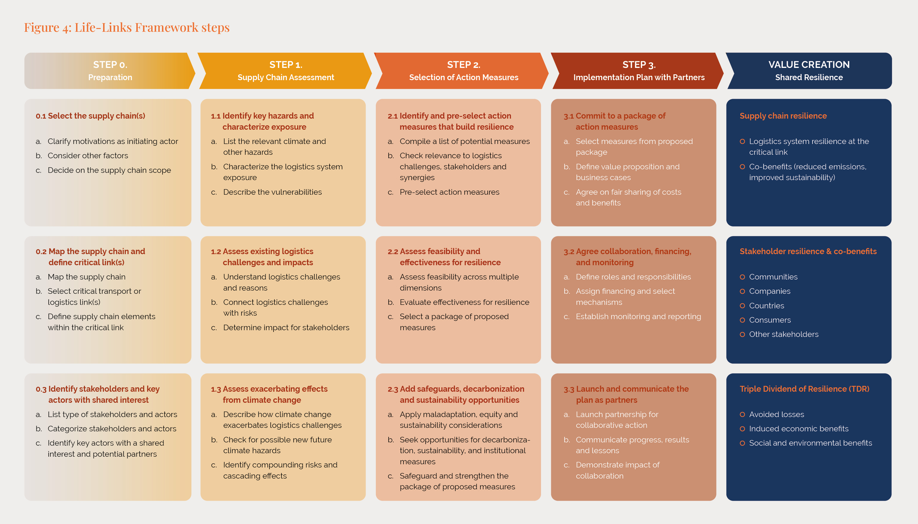 Examples are used to give the step more practical meaning, drawing from pilot applications that are already underway in agricultural supply chains connecting East Africa to Europe led by the Kuehne Climate Center, along with other practical examples provided by Life-Links Council members and from guidelines and literature.